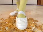 【本日のメニュー】ナス、ピーマン、キュウリ、トマト、枝豆、生卵、厚揚げ、水餃子、ウインナー、うずらの卵、豆腐。ブラックのセットアップのランジェリーに、レッドヒール、セクシーなブラックレースのフィッシュネット、そして、ポニーテール。足首からふくらはぎにかけてのラインが最高だね、みねおちゃん!!ナスは、ヒールに刺さっちゃったり、ナスの皮でキシキシ。ピーマン、キュウリはクラッシュの時の音がすっごいパリパリ!!いい音♪気持ちいい~って…雰囲気からは想像できない、結構、大胆なクラッシュだね。彩りが足りないなぁ~って。玉子!!!どちらにしようかな?って、「えいっ!!」ウワァ、びっくり。そっちなの??コケティッシュなみねおちゃんの本領発揮???卵のクラッシュ、楽しーい!癖になっちゃう~!野菜は水分が多いから、あまり、靴裏は汚れないんだね。フィッシュネットでクラッシュ!!ヌルヌル、冷たーい!あ、足にすごーい染みてきたよ。足のマッサージみたーいって。ますます大胆になってきたみねおちゃん、うずらの卵、一気に全部クラッシュしちゃうの?!?!つ・い・に!!!生足!!!フィッシュネットを脱ぐ、生脱ぎシーンも、サービス、サービス!トマト、踏んでて一番気持ちいいかもって。トマト、うずらの卵、水餃子、そして、豆腐のクラッシュの接写。みねおちゃんが、楽しそうに、睾丸を踏んでくれるのを想像したら、たまらないよなぁ…。最後の特典、シャワールームでのみねおちゃん、ほんわかの笑顔、かわいいなあ、小動物系でコケティッシュ♪また、勢いのあるクラッシュ、見せてくださーい!!
